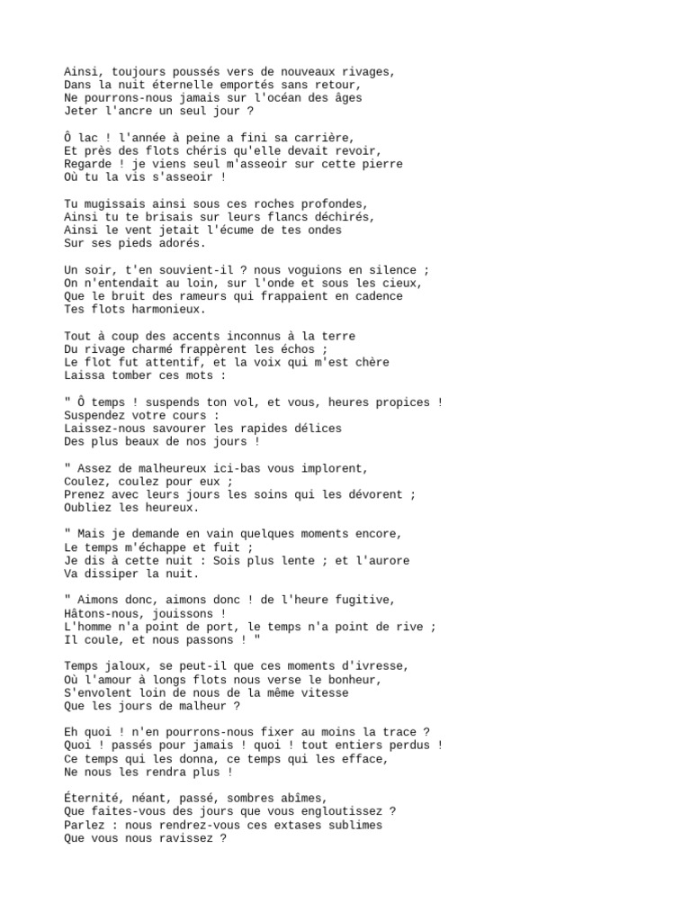 Le Lac de Alphonse de Lamartine PDF Poésie Poèmes